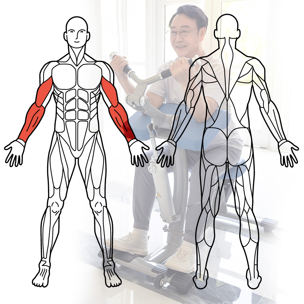 DK-678アームエクステンション / アームカールはひじの曲げ伸ばしトレーニングで物を持ち上げる動きを改善します。二の腕のたるみ解消にも効果的です。