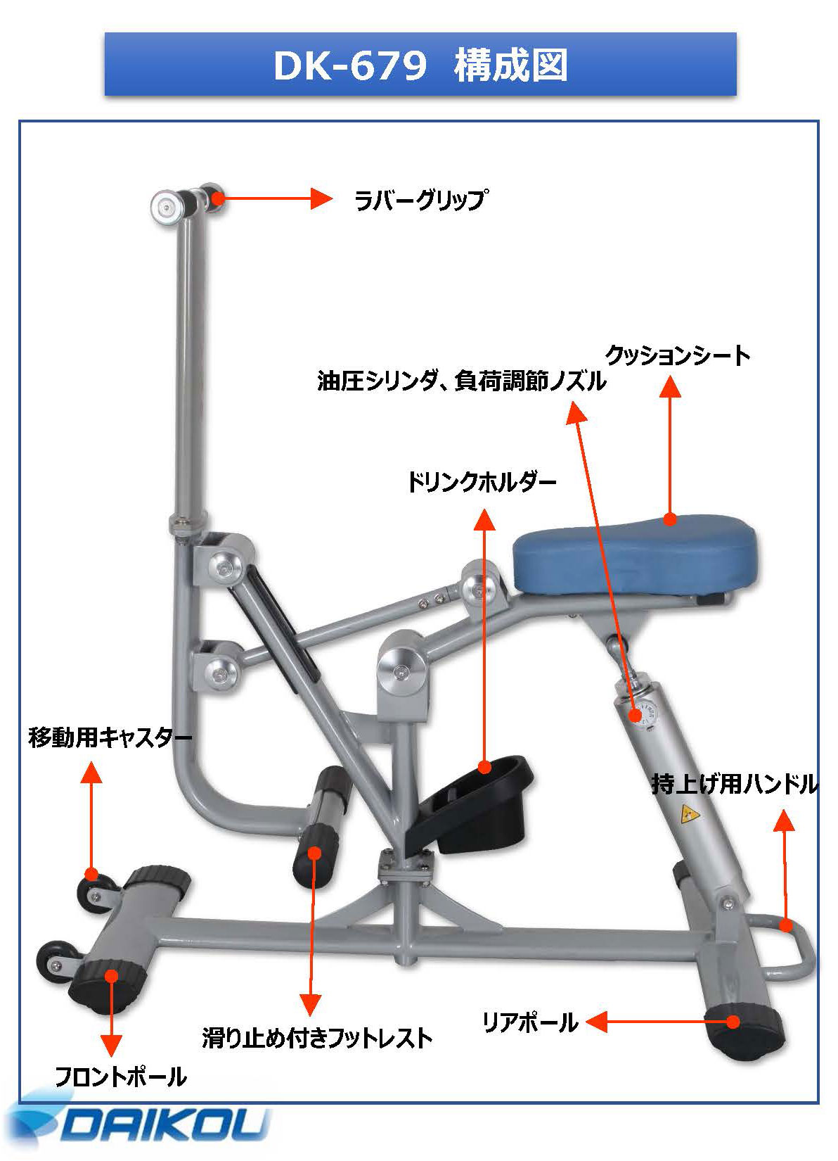 DK-679は双方向油圧シリンダーを用いており、引く時・押す時それぞれに負荷がかかるので、1台で2種目のトレーニングが行えます。