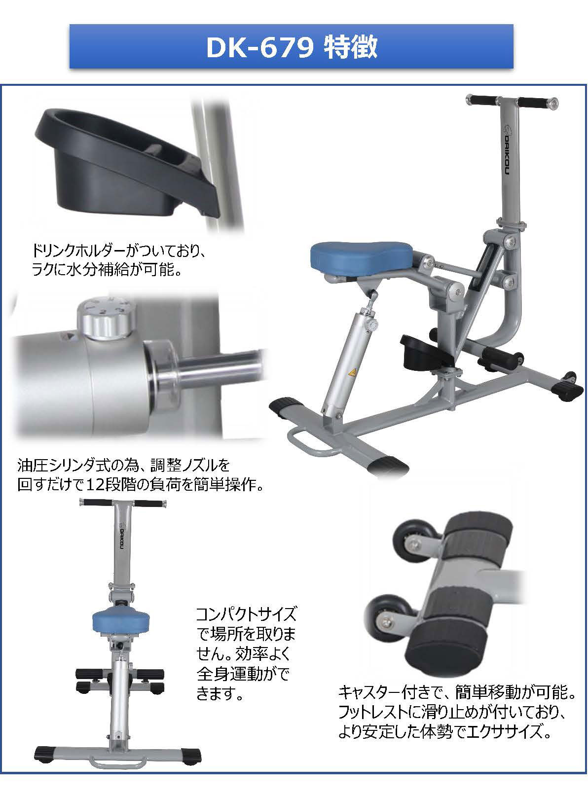 DK-679ホースライディングは身体全体の筋肉と協調性を鍛えます。遊具のような楽しい動きでウエスト周りと太腿の引き締めが同時に行えます。